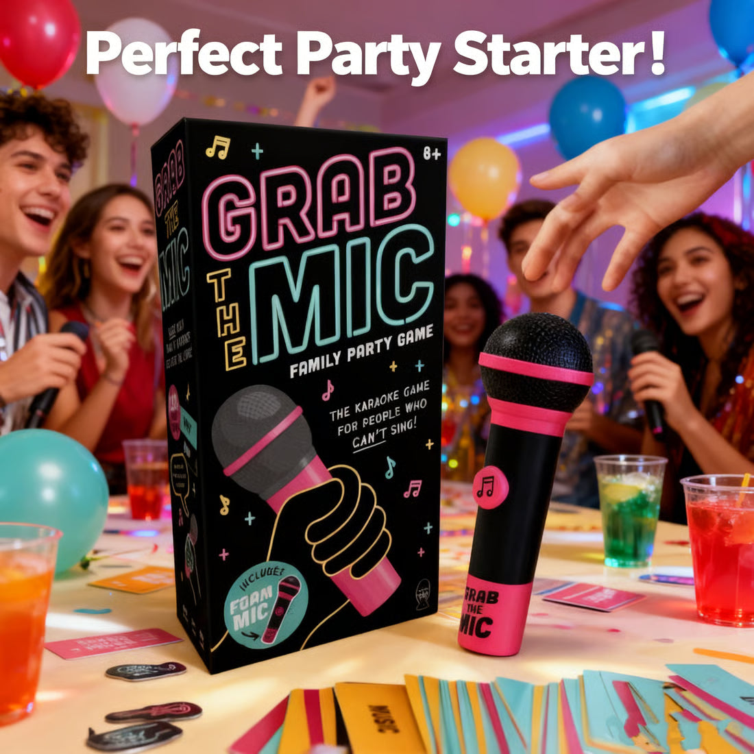Turn any night into a wild sing-off where laughter and fun rule! Grab The Mic is the fast-paced karaoke game that challenges you to race for the mic and sing lyrics with a twist—no singing skills needed. Perfect for all ages and groups, it’s your instant party starter with cards, tokens, and a foam mic included. Ready to grab the spotlight and make unforgettable memories?